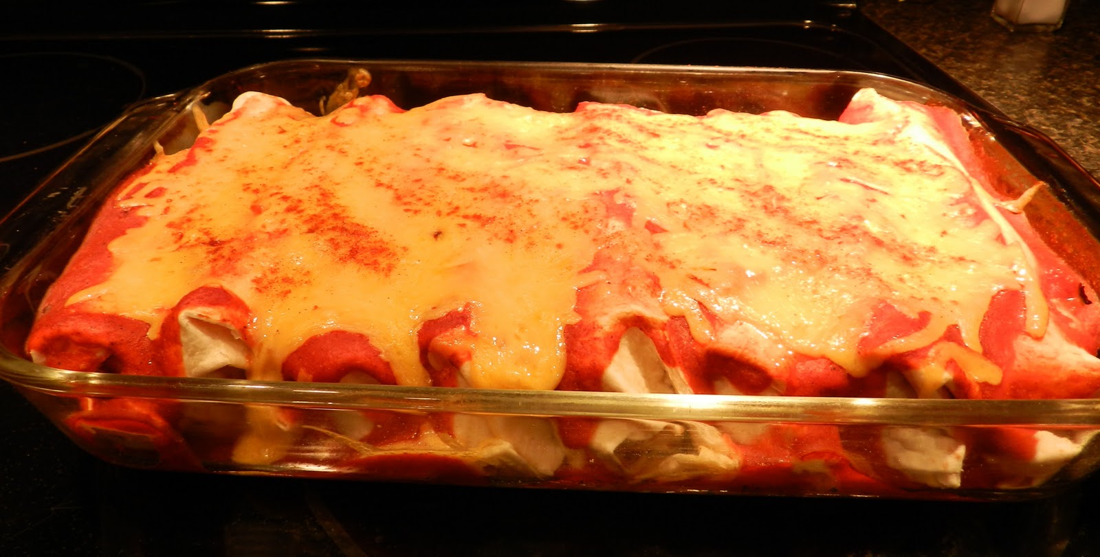 Oh...and I forgot to mention that I sprinkle paprika on top when I want the finished pan of enchiladas to look pretty for company or for blog browsers. It doesn't mess with the flavor, but it looks nice and this is a catwalk. The models must accessorize!